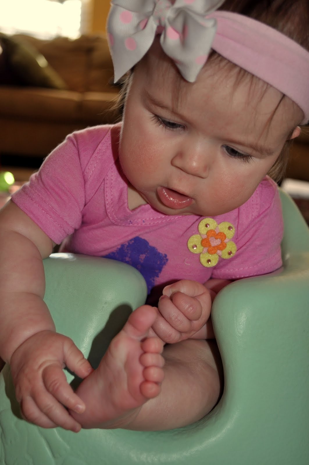 • She has been a HORRIBLE night sleeper! She will be up every 2.5 to 3 hours all through the night. Her pedi said that she is just getting up out of habit, and that she does not need to be eating this frequently throughout the night. I am happy to say that she is doing better the past three nights and is going from 7ish-5, then eats and is back down until 7:30. We have had to let her cry it out a bit, which breaks my heart, but will be better for her in the long run. It has seemed to work, barely any crying last night. Let's hope this continues!